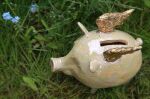 Świnka ze złotymi skrzydłami - ceramiczna świnka - skarbonka z kolekcji "Świata Równoległego".