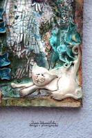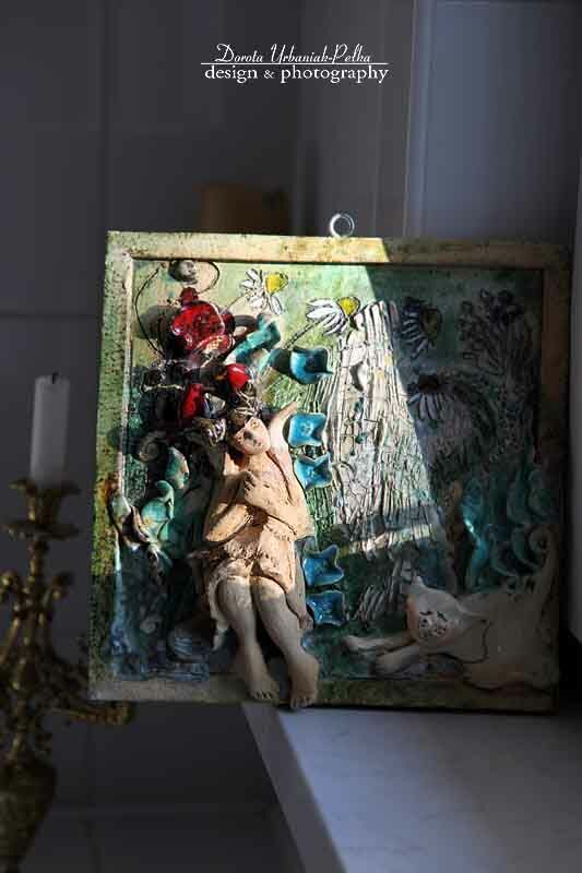 WIOSNA RADOSNA Z KOTEM - KAFEL CERAMICZNMY