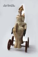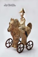 KOŃ WSPARTY NA STALOWYCH NIERUCHOMYCH KOŁACH.