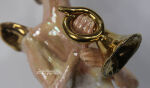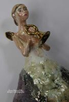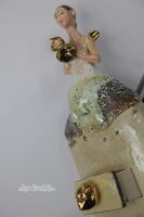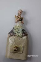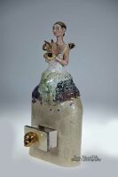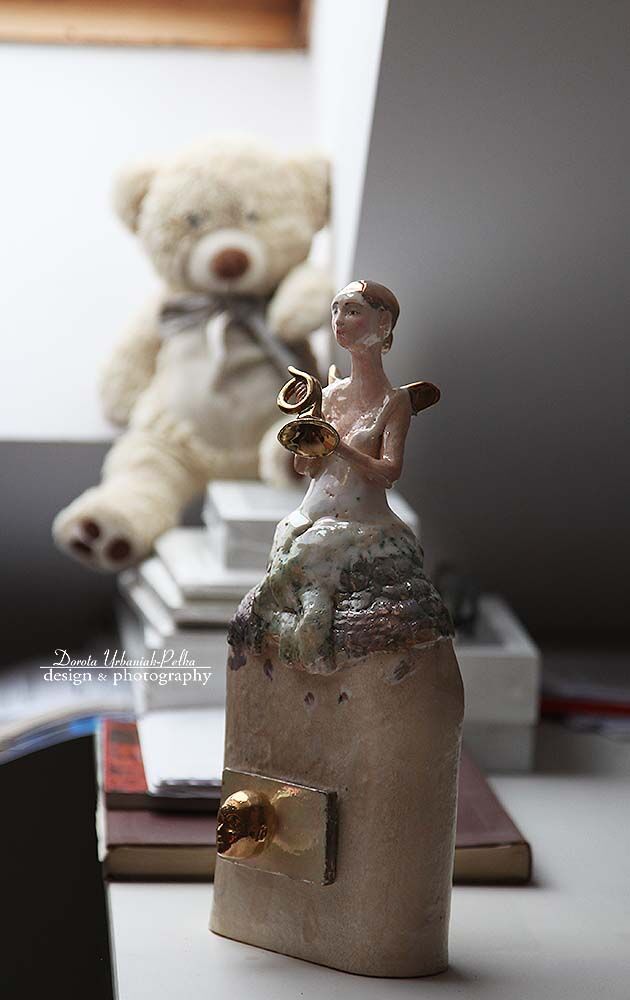 Sekretnik wykonany z szamotu. Szkliwiony i wypalony w temperaturze 1080 st.C. Główka przy szyfladzie, włosy, skrzydła oraz trąbka szkliwione złotem. Sekretnik może być postawiony lub powieszony na ścianie. PRZEDMIOT JEDNOSTKOWY - UNIKATOWY - SYGNOWANY NAZWISKIEM AUTORA