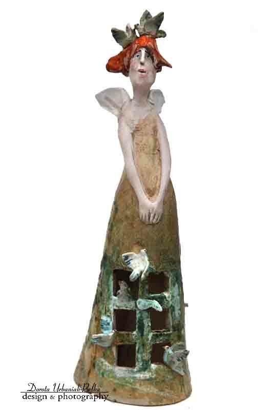 Anioł wykonany z gliny szamotowe.