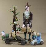 Rzeźba wykonana z szamotu szkliwionego.