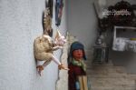 | Szamot szkliwiony tlenkami metali oraz złotem. POSTAĆ PRZEZNACZONA DO ZAWIESZENIA NA ŚCIANIE LUB POSTAWIENIA NA PÓŁCE. ROŻEK , guziki u bucików i na brzuszku oraz elementy kryzy szkliwione złotem. wysokość - 24,5 cm szerokość - 8,0 cm głębokość - 15,0 cm |