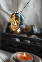 | Wisior. Główka wykonana z ceramiki. Twarz pokryta złotem. Do sprzedaży oferowana jest sama główka. |