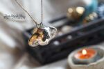 | Wisior. Główka wykonana z ceramiki. Pokryta szkliwem, oraz preparatami metali szlachetnych - złotem oraz platyną. Do sprzedaży oferowana jest sama główka. |