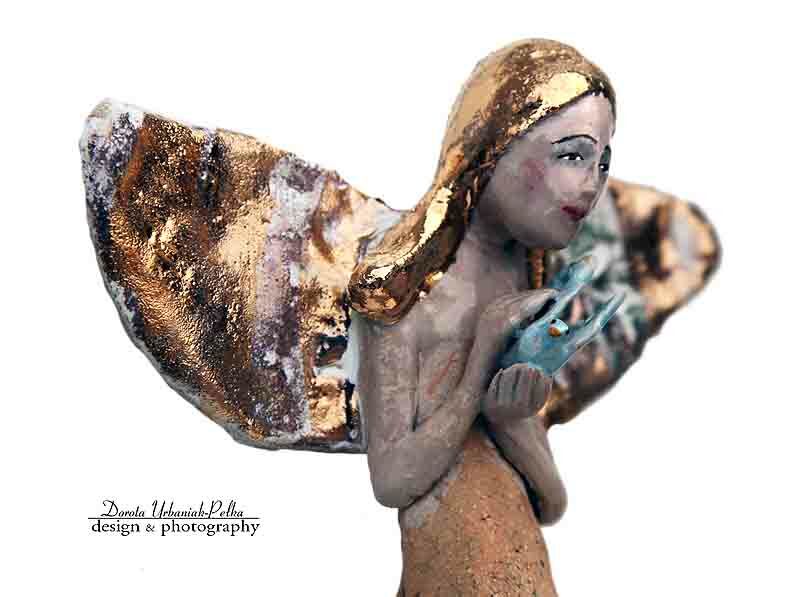 ANIOŁ O SKRZYDŁACH TURMALINOWYCH Z NIEBIESKIM PTAKIEM
