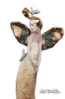 ANIOŁ O SKRZYDŁACH TURMALINOWYCH Z DWOMA PTAKAMI
