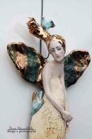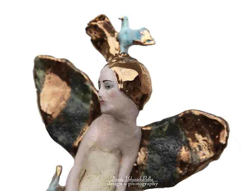 Skrzydła, ptasie piórka oraz buciki szkliwione złotem