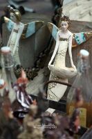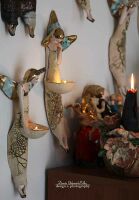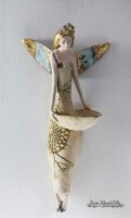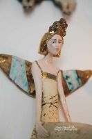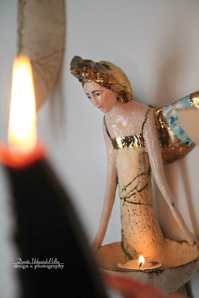 Skrzydła, włosy , ELEMENT GÓRNY SUKNI szkliwione złotem.