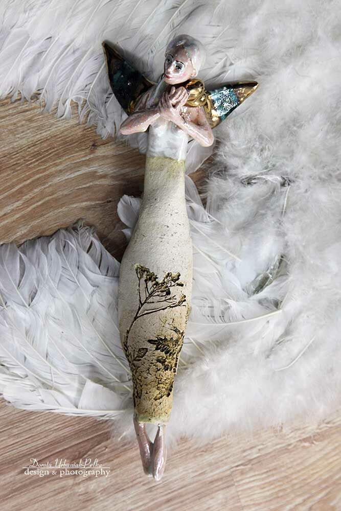 ANIOŁ ŚWIECZNIK TURMALINOWY ZE ZŁOTYM SERDUSZKIEM
