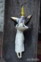 ANIOŁ-ŚWIECZNIK WYKONANY Z SZAMOTU .