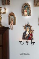 CZARNA MADONNA W POŚWIACIE ŚWIEC W BIAŁYCH KWIATACH