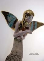 Włosy, skrzydła buciki pokryte złotem.