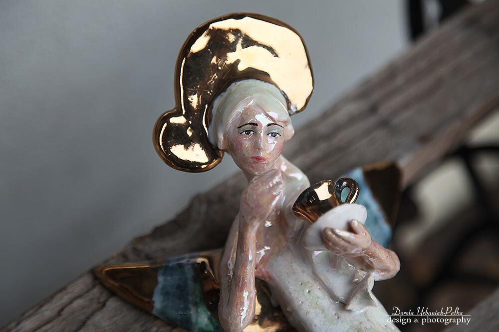 ANIOŁ TURMALINOWY Z FILIŻANKĄ