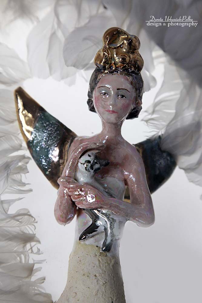 ANIOŁ TURMALINOWY Z KOTKIEM