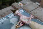 Skrzydła oraz nakrycie głowy szkliwione miedzią oraz złotem.