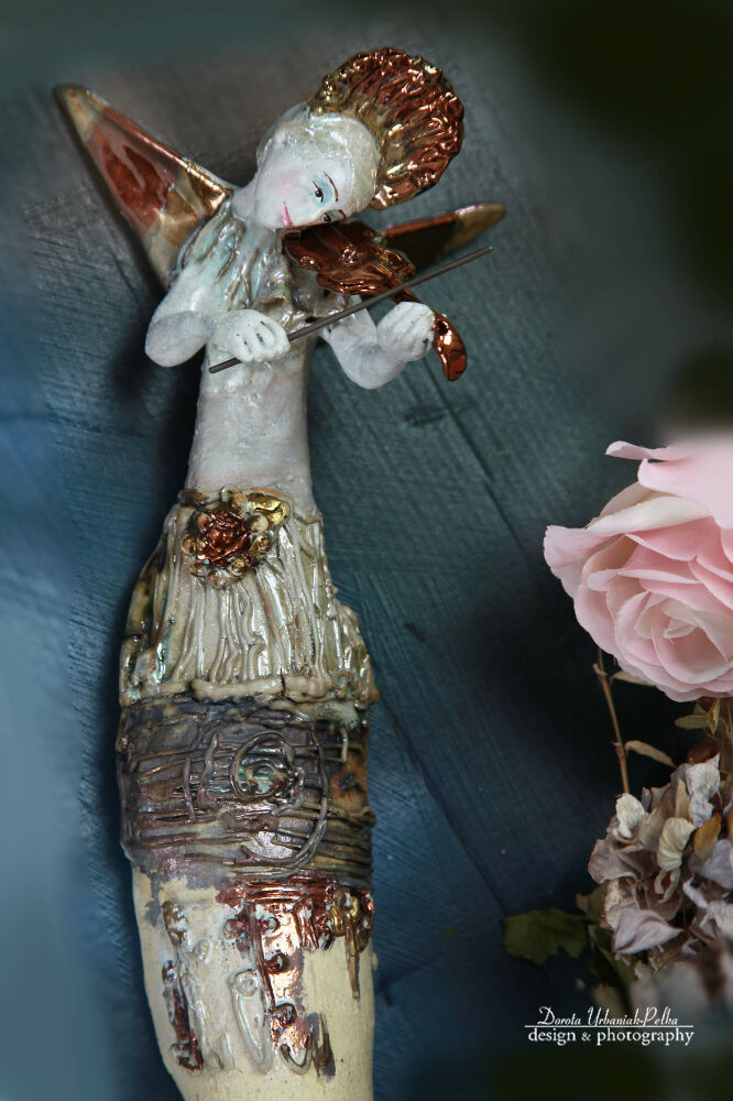 ANIOŁ TURMALINOWY Z MIEDZIANYMI SKRZYPCAMI