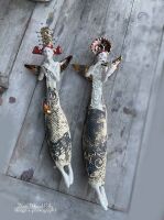 Skrzydła oraz liczne detale szkliwione miedzią oraz złotem.