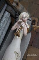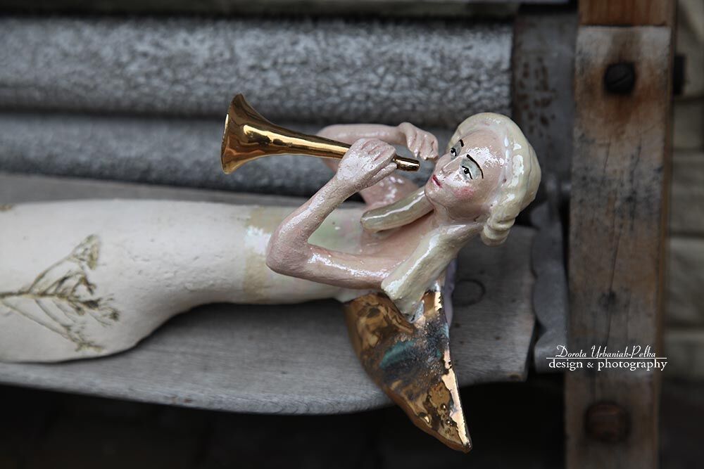 ANIOŁ TURMALINOWY ZE ZŁOTĄ TRĄBKĄ