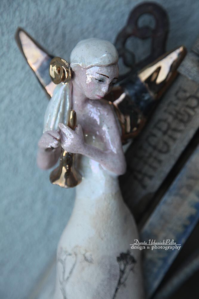 ANIOŁ TURMALINOWY ZE ZŁOTĄ TRĄBKĄ
