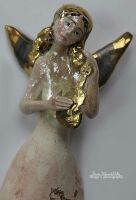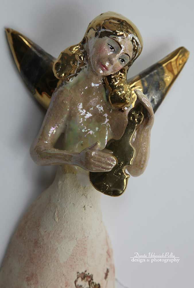 Skrzydła , włosy, skrzypce pokryte złotem.