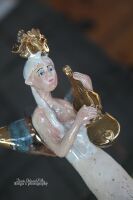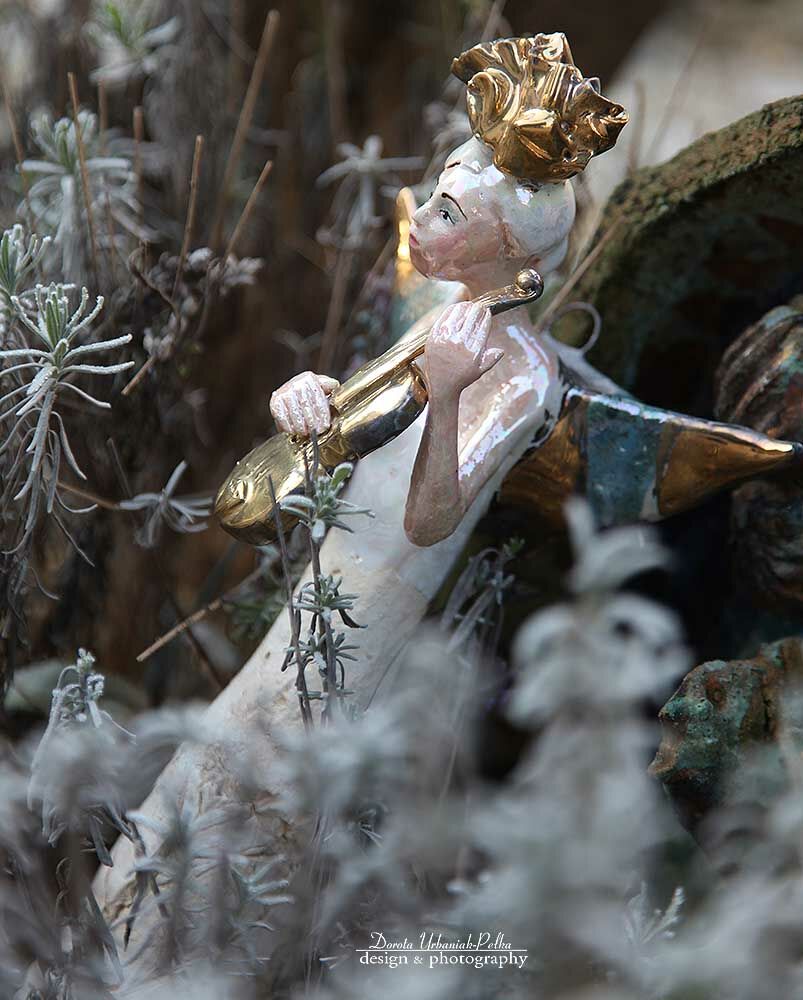 Skrzydła, skrzypce, różek szkliwione złotem.