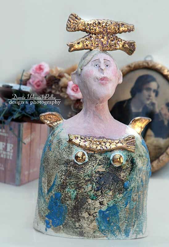 Element: Ryby, skrzydła oraz kółeczka złocone prawdziwym złotem.