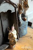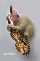 CZAPKA, WIOLONCZELA, ELEMENTY BUCIKÓW ORAZ SZATY SZKLIWIONE ZŁOTEM.