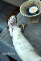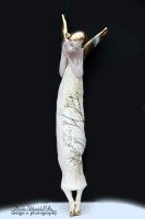 Skrzydła , włosy oraz buciki szkliwione złotem.