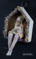 ELEMENTY LIŚCI, SZATY ORAZ TYŁ KAPLICZKI  SZKLIWIONE ZŁOTEM.
