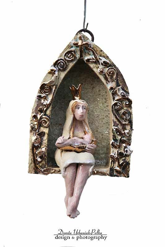 ELEMENTY LIŚCI, PTASZKI, SZATA, KORONA SZKLIWIONE ZŁOTEM,.