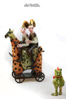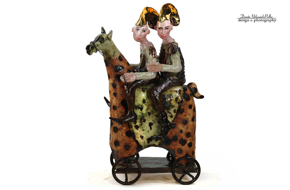 Koń i jego dwaj jeźdżcy - Na drogach świata - ceramiczna rzeźba konia - stojąca rzeźba ceramiczna z kolekcji "Świat równoległy".