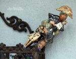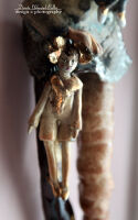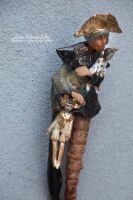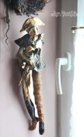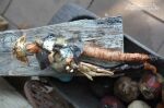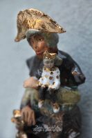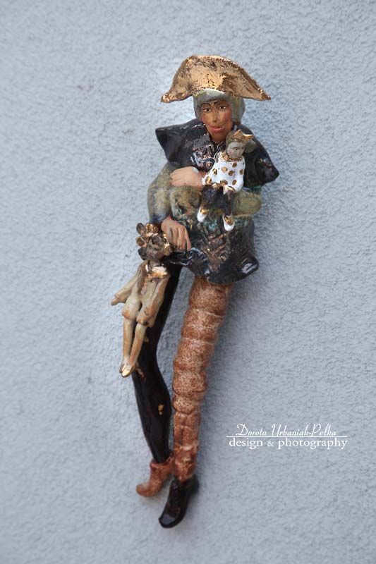 Czapka oraz elementy stroju lalek pokryte szkliwnym złotem.