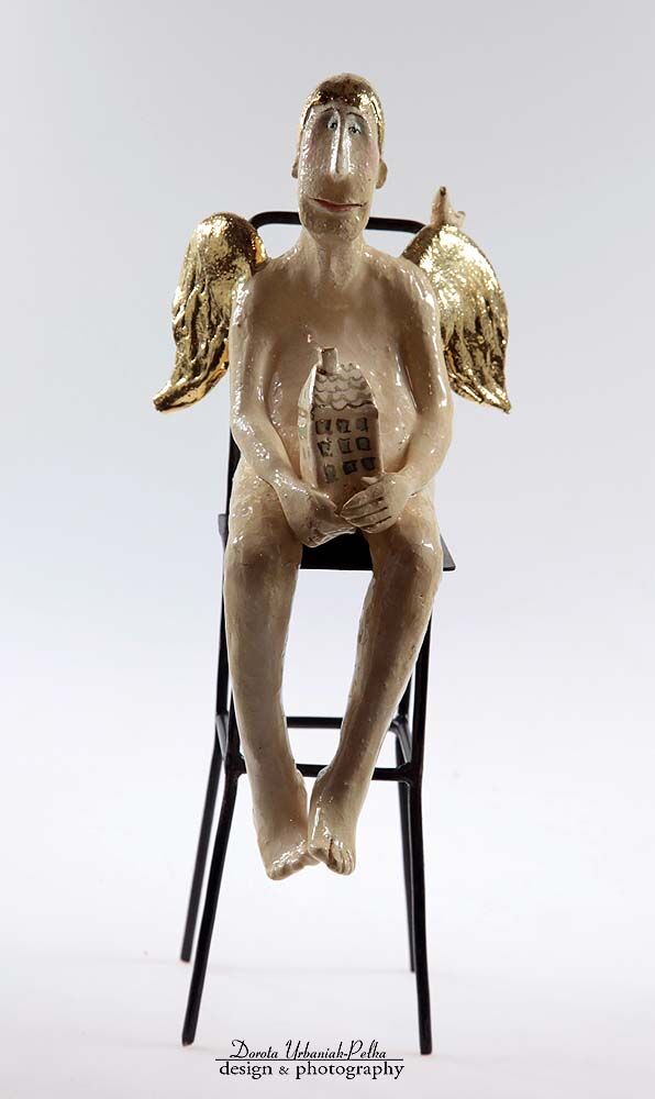 ANIOŁ - RZEŹBA KAMERALNA WYKONANA Z SZAMOTU - SZKLIWIONA.