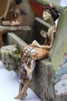 MONOCHROMATYCZNY ANIOŁ ZE ZŁOTYMI PTASZKAMI