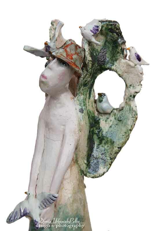 Anioł wykonany z gliny szamotowe.