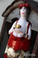 FILIŻANKA ORAZ ELEMENT BUCIKÓW ORAZ DŁONI SZKLIWIONYZŁOTEM