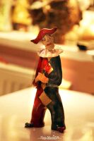 Pierrot wykonany z glinki kamionkowej.