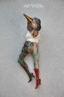 Pierrot wykonany z szamotu i wypalony w technice RAKU.