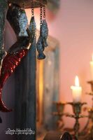 CZTERY SZKLIWIONE RYBY - RUCHOME - ZAWIESZONE NA METALOWYCH ŁAŃCUSZKACH.