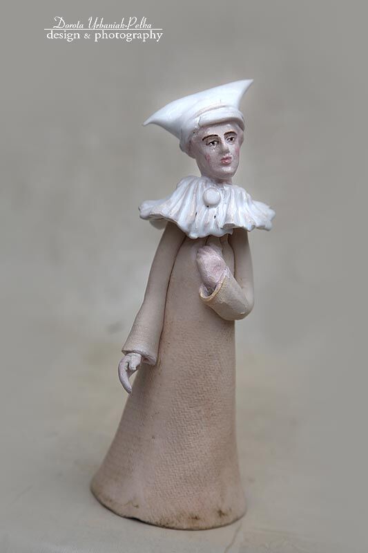 Pierrot wykonany z częściowo szkliwionej glinki kamionkowej.