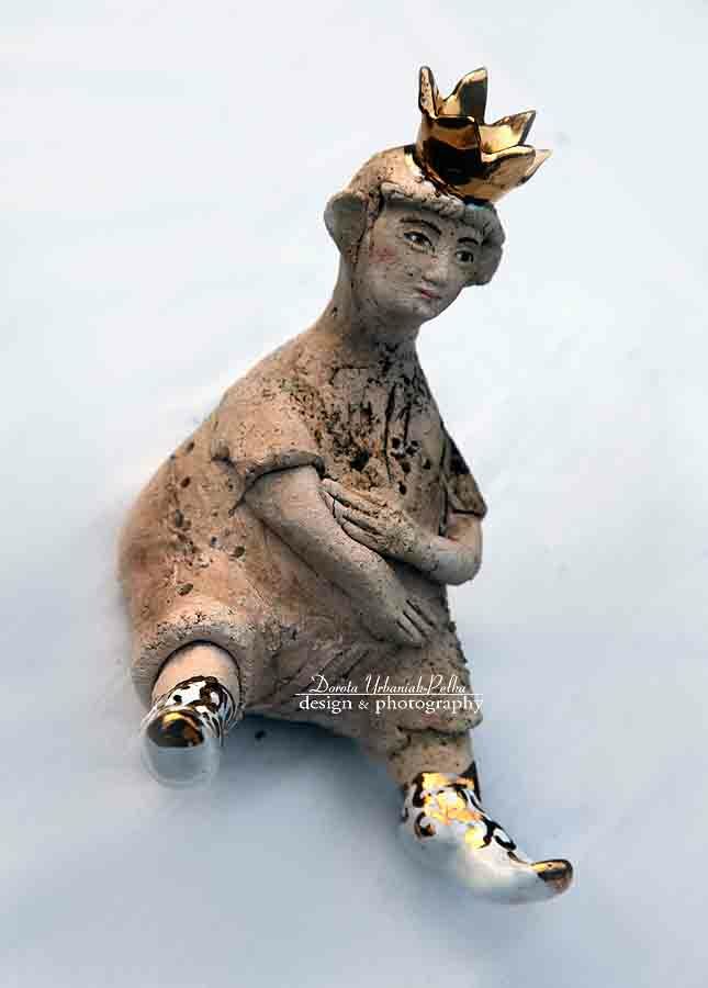 Korona oraz element bucików szkliwione prawdziwym 16-karatowym złotem.