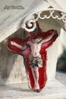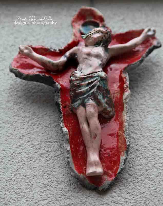 Krzyż wykonany z szamotu- wypał RAKU - REDUKCJA