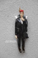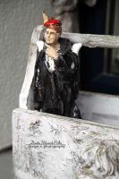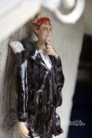 Szamotowy anioł na ścianę - figurka ceramiczna szkliwiona - dekorowana