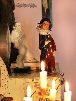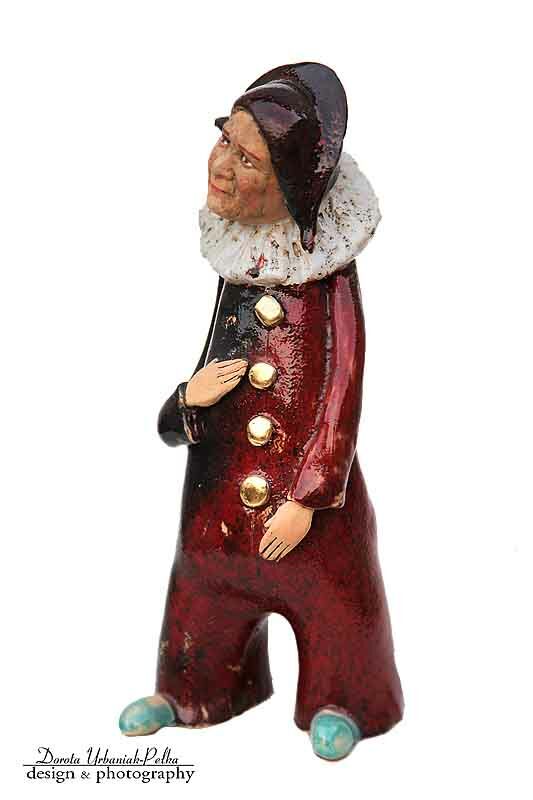 | POSTAĆ WYKONANA Z GLINY SZAMOTOWEJ. SZKLIWIONA. GUZIKI POKRYTE SZLAGMETALEM KOLORU ZŁOTEGO. |