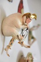 CZAPKA, PTASZEK W METALOWEJ KLATCE, BUCIKI ORAZ POŃCZOSZKI SZLIWIONE ZŁOTEM.