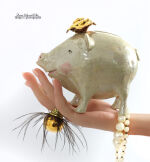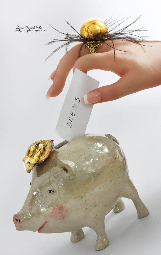 Świnka ze złotą różą – Sekretne pudełko - Ceramiczna skarbonka lub sekretnik z kolekcji „Parallel World”.
