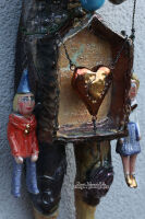 W surrealistycznym splocie sztuki i magii, oto teatralny lalkarz, który jest strażnikiem tajemnicy „Świata Równoległego”. Jego ceramiczne ręce trzymają stalowe nici marionetek, które odgrywają snuć opowieści pełne humoru, melancholii i nieskończonej wyobraźni. Miedziane serce pulsuje pełne miłości . Kapelusz w odcieniach złota, wydaje się być koroną sceniczną geniusza – element, który rzuca spojrzenie jak latarnia w mroku.